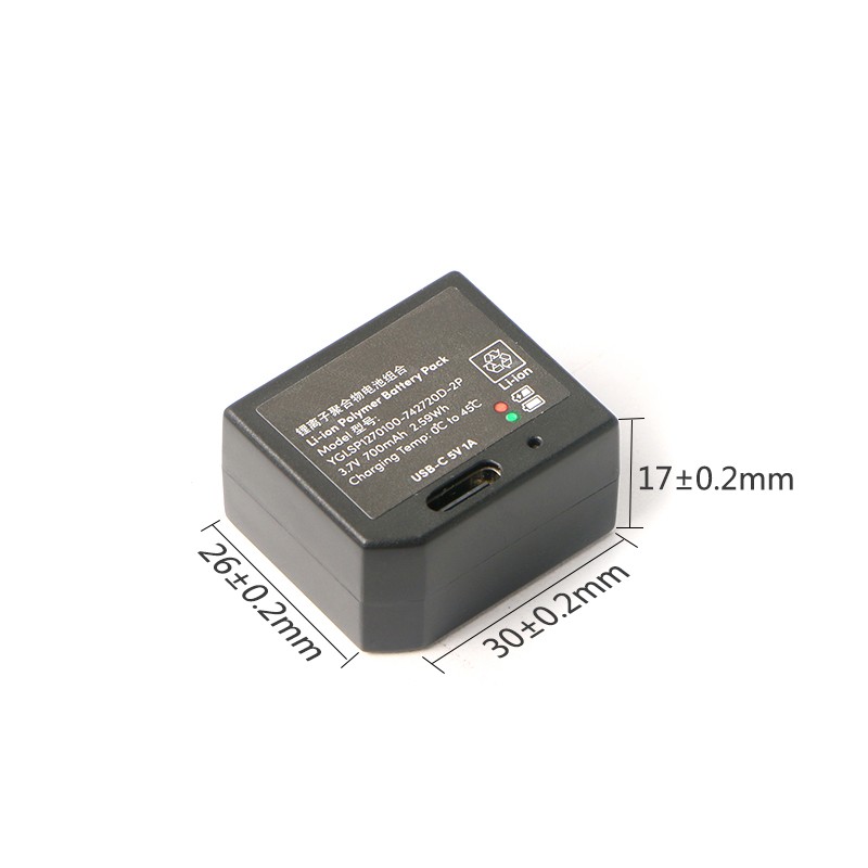 3.7V/700mAh智能門鎖後備電源 產品編號:YL007 電芯型號:聚合物 電池規格:1串2並 標稱電壓:3.7V 標稱容量:700mAh 充電電壓:4.2V 充電(diàn)電流:140mAh 放電電流:140mAh 瞬間放電電流:700mAh 放電截(jié)止電(diàn)壓:3V 成品內阻:200mΩ 電池重量:20g 產品尺(chǐ)寸:17*26*30mm(Max) 充電(diàn)溫度:0~45℃ 放電溫度:-20~60℃ 存儲溫度:-0~40℃ 電池外殼:ABS+PC塑膠 鋰電保護:短路(lù)保護,過充保護,過放保護,過流保護,溫(wēn)度保護(hù)等 應用(yòng)領域:便攜產品後備電源
